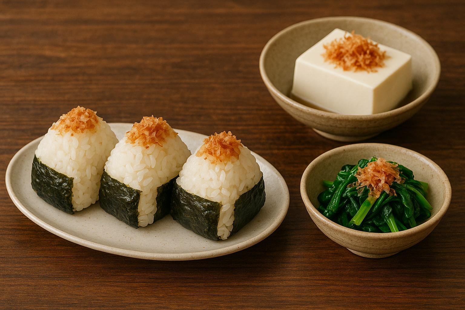 ほうれん草や小松菜のおひたしにおかかをのせるだけで、香りと旨味が倍増。