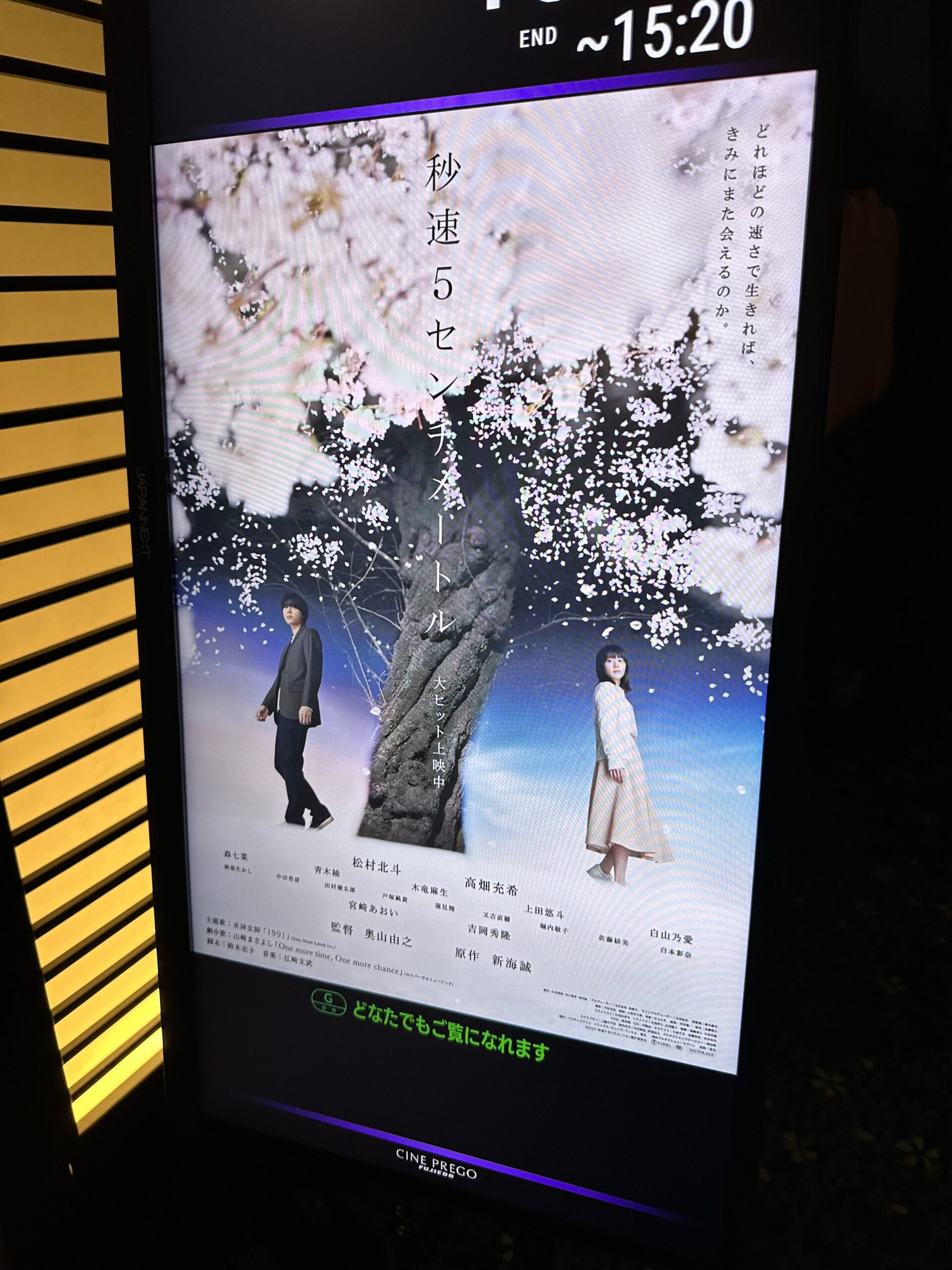 先日、映画「秒速5センチメートル」を見に行ってきました。